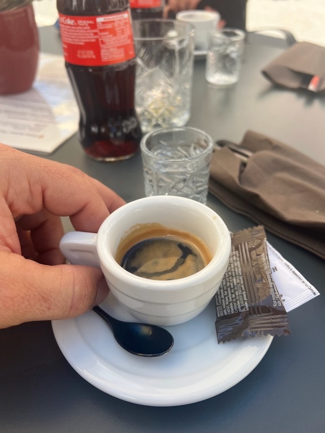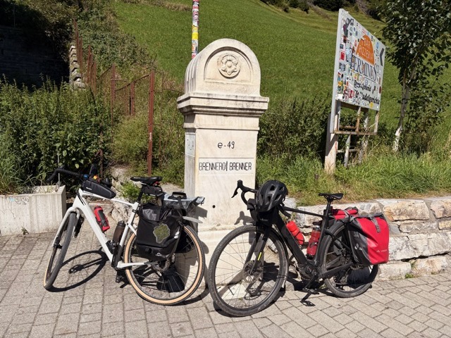 We pedal steadily up the old Roman road and reach the pass around midday. Espresso on the Italian side, baguette in hand.